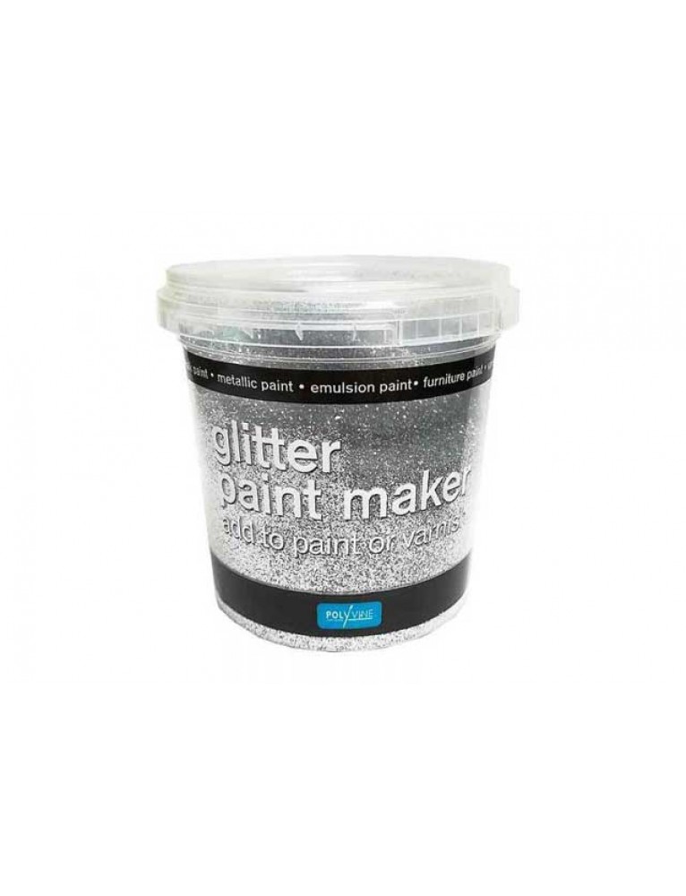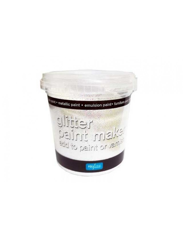 Πρόσθετο μεταλλικό glitter το οποίο αναμειγνύεται με οποιοδήποτε υδατοδιάλυτο χρώμα ή βερνίκι και του προσδίδει glitter φινίρισμα. Απλώς αναμείξτε το Glitter Paint Maker της Polyvine με το χρώμα ή το βερνίκι της επιλογής σας και δημιουργήστε ένα εντυπωσιακό διακοσμητικό εφέ. Κατάλληλο και για Chalk Paint!