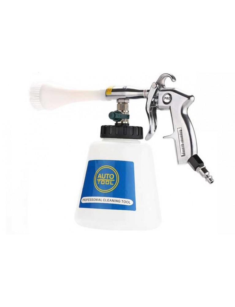 Πιστόλι αέρος τύπου "Tornador Gun Effect", με βούρτσα, για καθαρισμό του εσωτερικού χώρου των αυτοκινήτων. Πιστόλι αλουμινίου, με πλαστικό κάδο χωρητικότητας 1000ml. Πίεση: 6-9,2 bar.