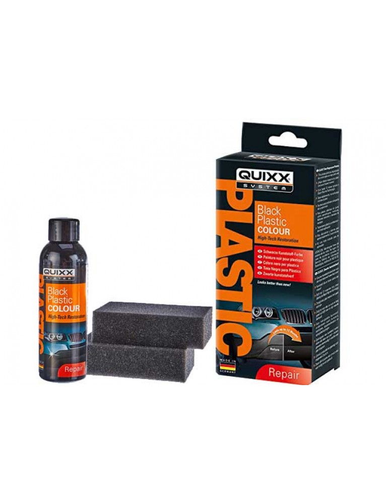 Το QUIXX Black Plastic Colour δίνει στο όχημά σας νέα εμφάνιση. Αυτό συμβαίνει γιατί τα πλαστικά εξαρτήματα του οχήματος φαίνονται γκρι, ματ και επομένως παλιωμένα μετά από λίγο. Περισσότερο επηρεάζονται οι προφυλακτήρες, καλύμματα θόλων τροχών και διακοσμητικές λωρίδες στις πόρτες και καπάκια του χώρου αποσκευών. Ενώ άλλα προϊόντα τα ανανεώνουν μόνο για σύντομο χρονικό διάστημα, το χρώμα μαύρων πλαστικών της QUIXX είναι μόνιμο χάρη στην τεχνολογία μαύρου πολυμερούς και προσφέρει βαθιά εντύπωση μαύρου χρώματος και προστασία για έως και 12 μήνες.